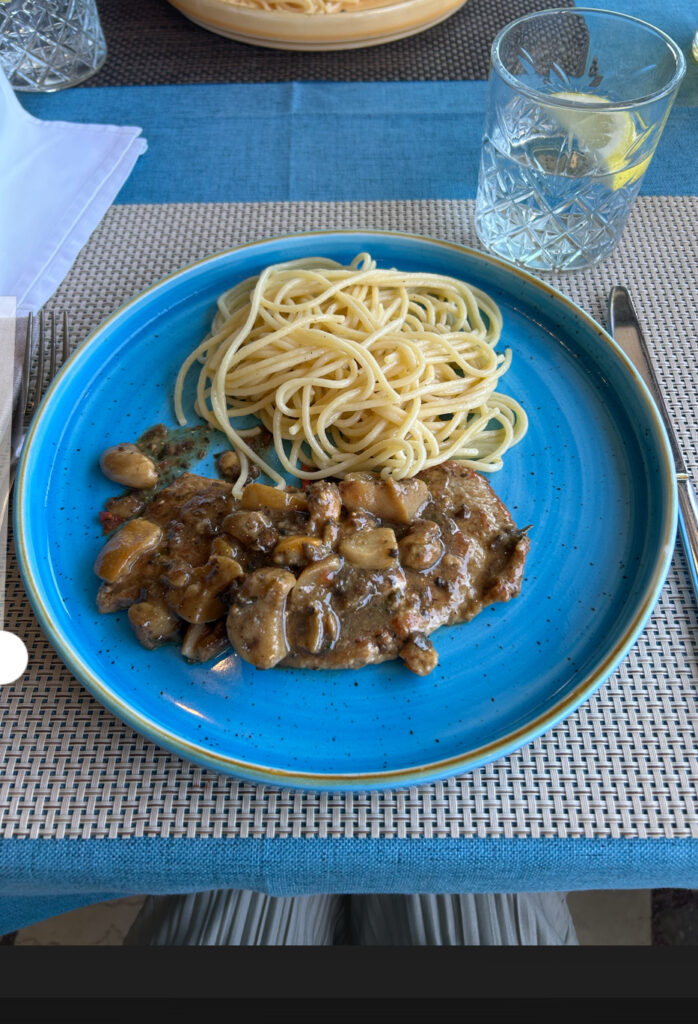 夕方、ロヴィニを後にしてバスで再びオパティアへ。ホテル近くのレストランでは、新鮮なシーフードをふんだんに使ったディナーとビールを楽しみました。