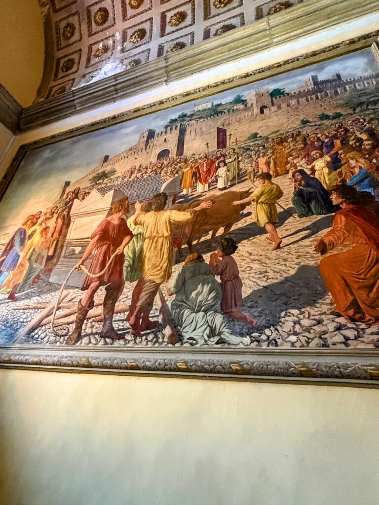 バラック様式の荘厳な内部を見学した後、鐘楼へと狭い急な木の階段を昇りました。