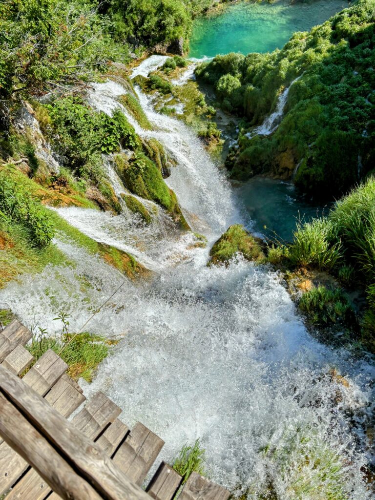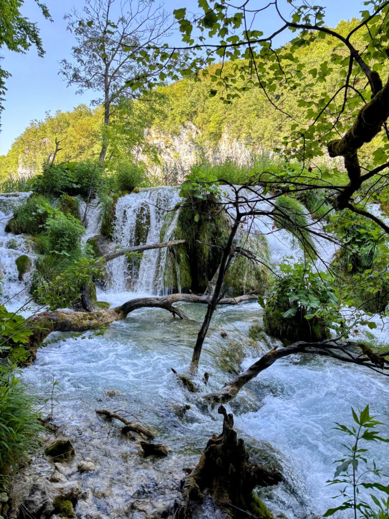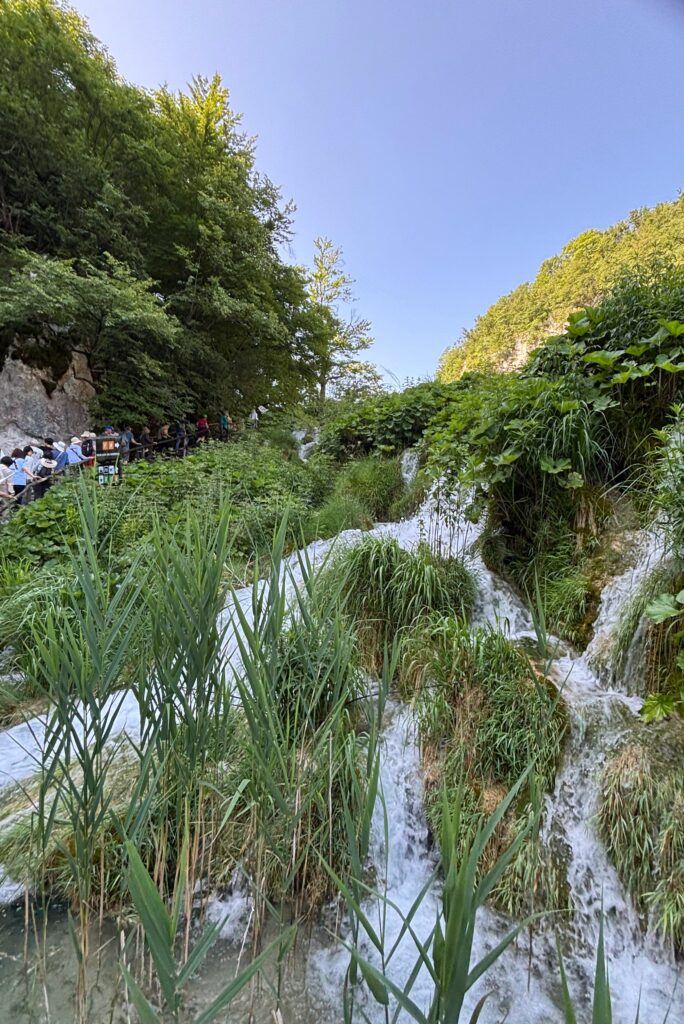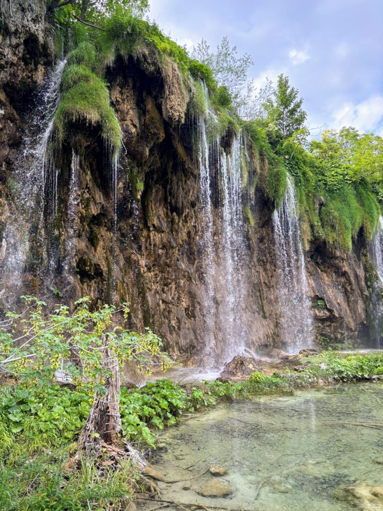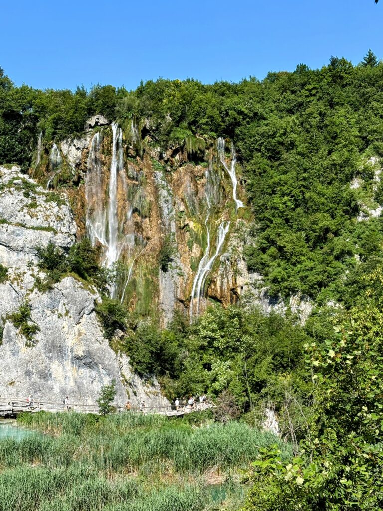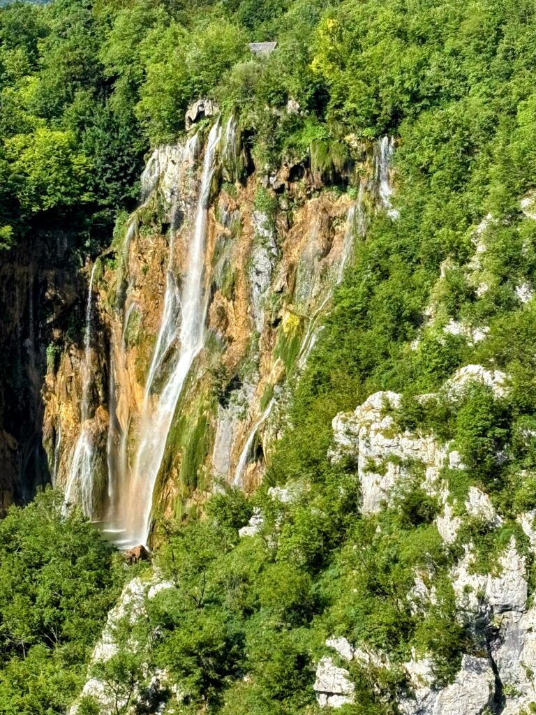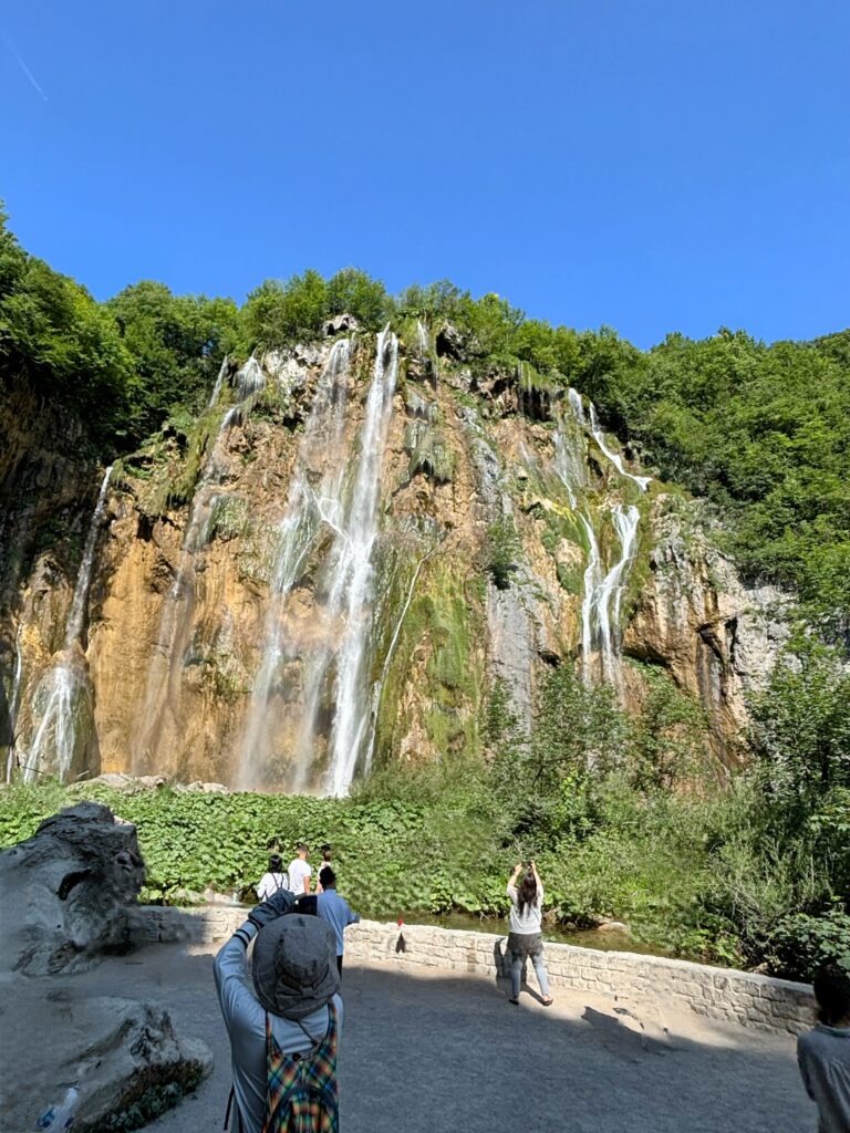 中でも圧巻だったのが、クロアチア最大の滝「ヴェリキ・スラップ」。高さ78メートルから一気に流れ落ちる水は、目の前で音を立てて岩に砕け散り、その飛沫が陽光に照らされて美しい虹を描き出します。