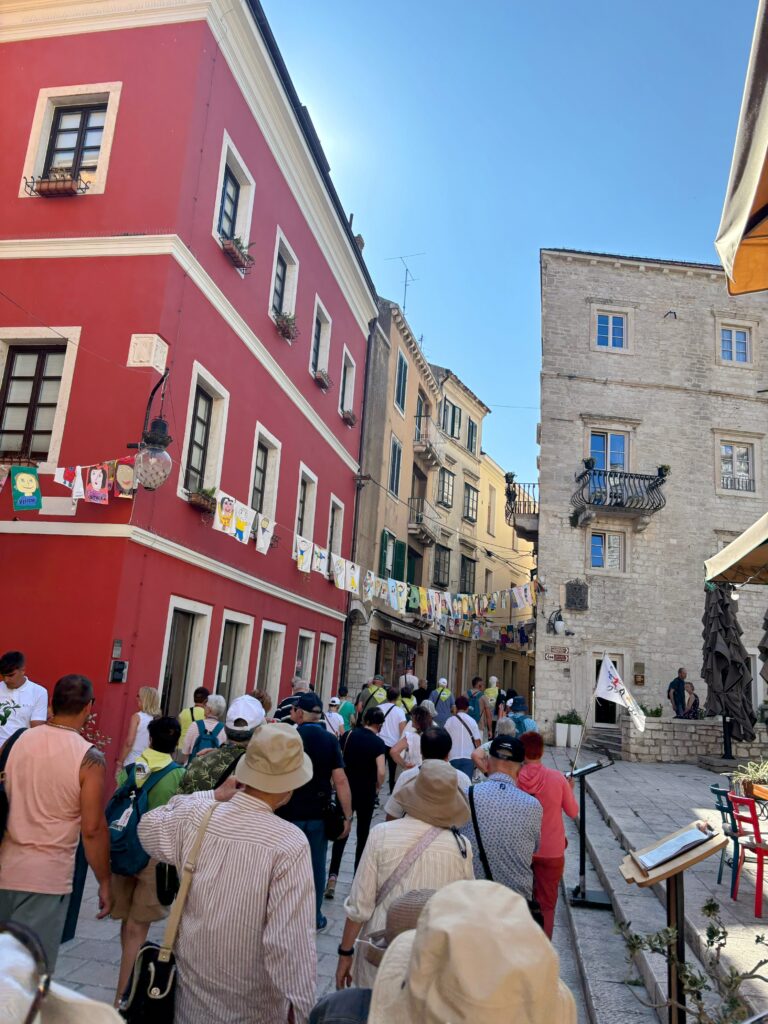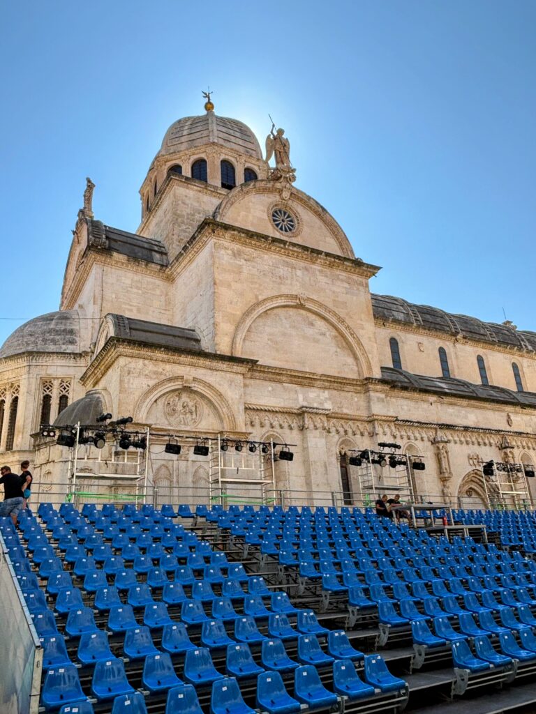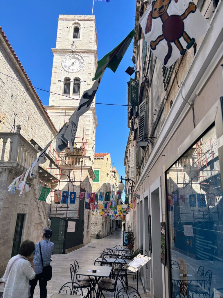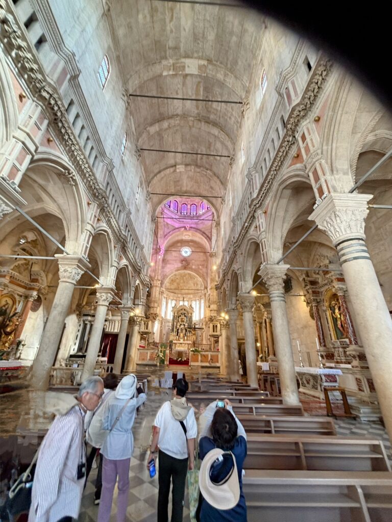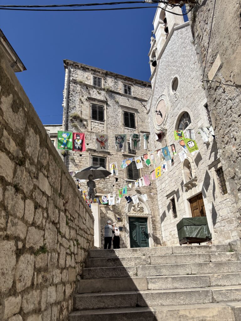 午後はバスで南下し、クルカ川の河口に位置する歴史港町・シベニクへ。石造りの街並みはどこか懐かしく、中世の空気を今に伝えるようでした。