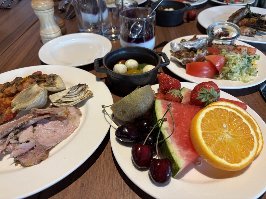 夕方、アドリア海沿いのスプリットに到着し、ホテルでの夕食はバイキング形式。