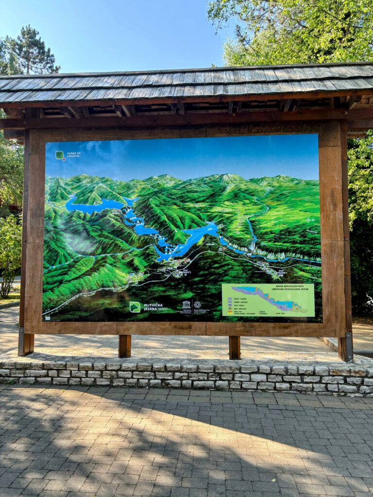 朝、ホテルを出発して向かったのは、世界遺産・プリトヴィツェ湖群国立公園。その中でも、今日は「下湖群」エリアを散策しました。前日に歩いた「上湖群」とは異なり、下湖群は石灰岩の断崖と透明度の高い湖面、そして幾重にも流れ落ちる滝が織りなす、よりダイナミックで華やかな風景が広がっていました。