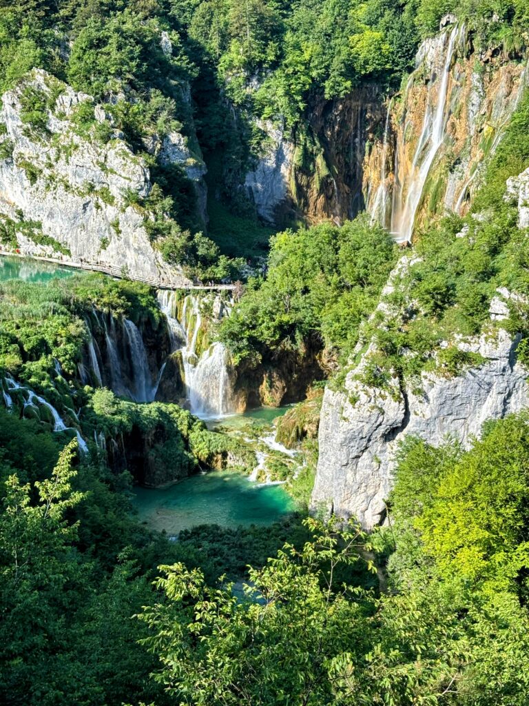幻想的なラストケ村を後にし、いよいよ旅のハイライト、プリトヴィツェ湖群国立公園へ。エメラルドグリーンやターコイズブルーに輝く16の湖と、それらを繋ぐ無数の滝が織りなす絶景は、まさに絵画のよう。現実離れしたその美しさに、ただただ息をのみました。