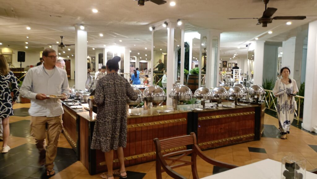 そして夜は、キャンディのホテルで夕食。これまでのどのホテルよりも料理のグレードが高く、参加者みんな大満足の素敵なディナーでした。旅の疲れも吹き飛んで、お腹も心も満たされました。