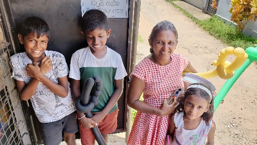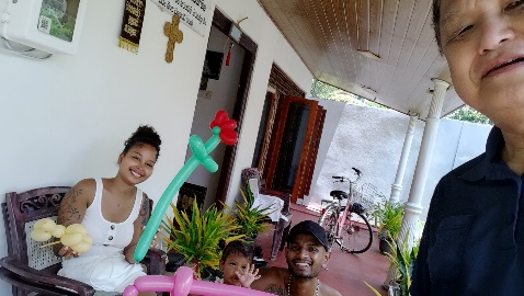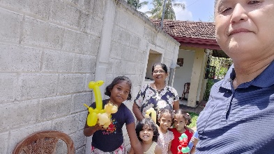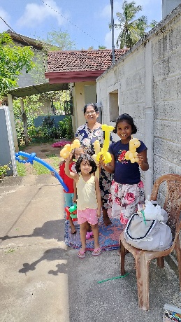 小店ちかくにある大きな家の中から30歳台のおじさんがでてきて「ちょっと私の家にきて何かつめたいものでものまないか」とまたまたお誘いがきたのでいそいそと中にはいると少し裕福でおおきな家にひきこまれた。そこには5歳くらいの女の子と美人の奥様が玄関の扉の前で遊んでいる。 要はこのご主人自分の娘に特別にバルーンを作ってほしいのだ。 ここでもそれでいくらいるのかとき聞くから、私はお金はいらないの。子供たちと遊べればそれで充分といいながら、冷たいジュースを頼んだ。 あんまり外は暑いので冷たい飲料水が欲しかったのだ。熱中症になってはいけないと自分の体を心配していっているだけのこと。 きくところによるとこのあたりではキリスト教徒が多くて、この夫婦はモルディブから移住してきたきたらしい。その国は環境に非常にきびしくて海外からプラスチック製品の持ち込みは一切禁止だそうで、お国自慢をしていた。海外からの観光客にたくさん来てもらうために国をあげて海の自然を守っていることを話していた。なるほど、でもとてもすばらしいことだねと同調してあげた。