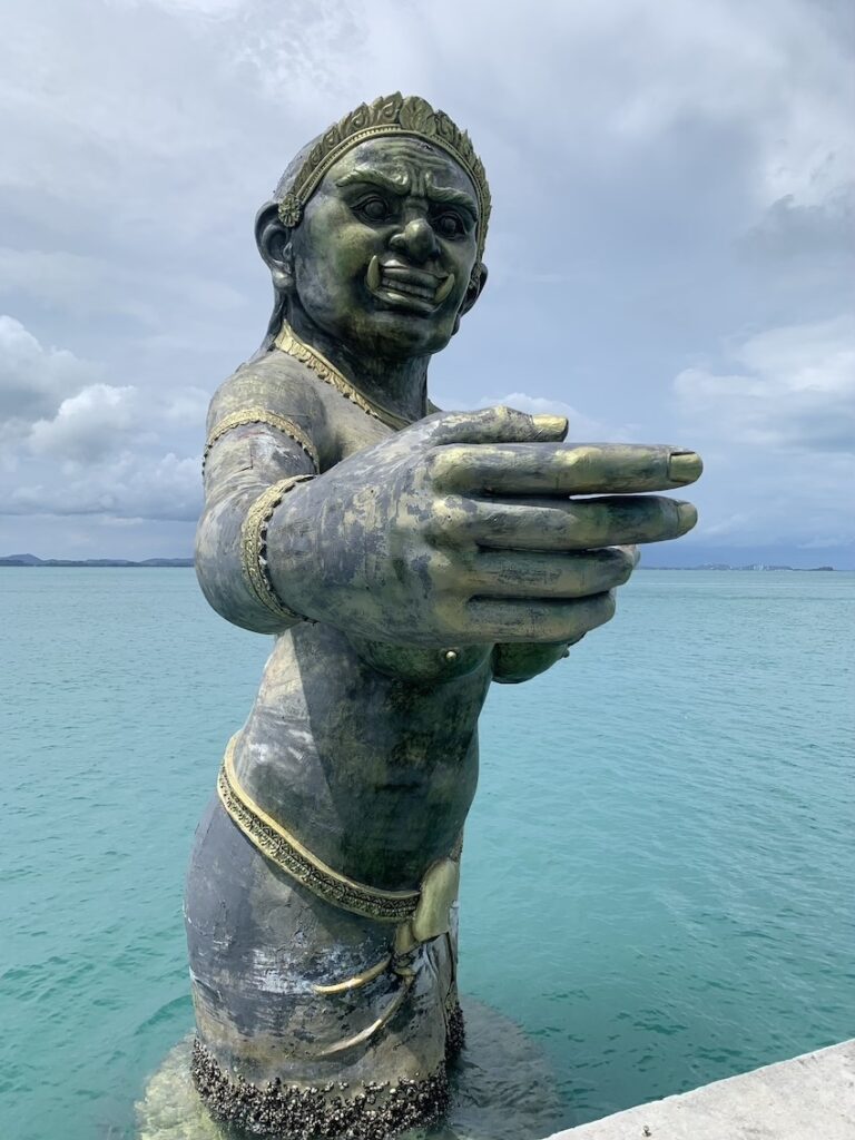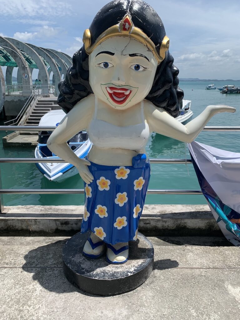 サメット島の玄関口であるナダン港に着くと、巨大な鬼女像ピースアサムットが出迎えてくれる。女神のようにも見えるが、海に住む鬼らしい。波止場の玄関には笛を吹く王子の像があり、向き合っているように作られている。この笛を吹く王子が島のいたる所にあるので、何者だろうかと調べてみた。すると、驚くべき物語があったのだ!