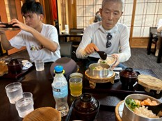 東大寺を出て、昼食の釜飯のお店へ。えび釜飯、大和鶏釜飯などのメニューを藤津さんが予約しておいてくださり、美味しくいただきました。