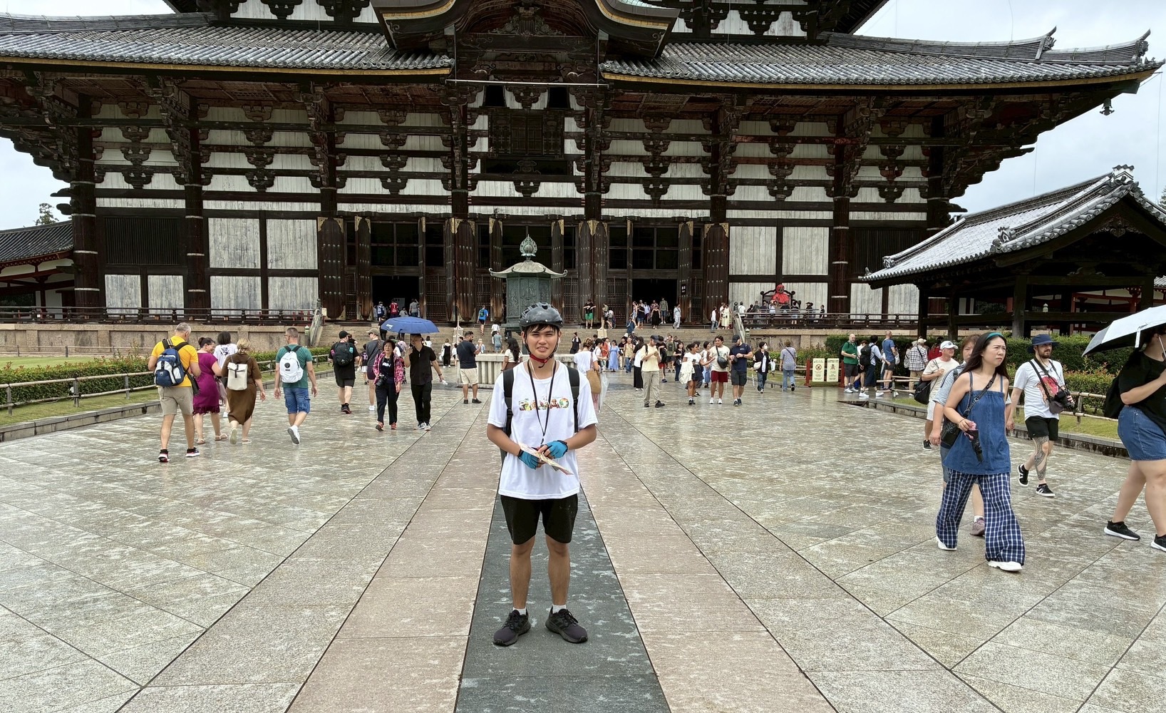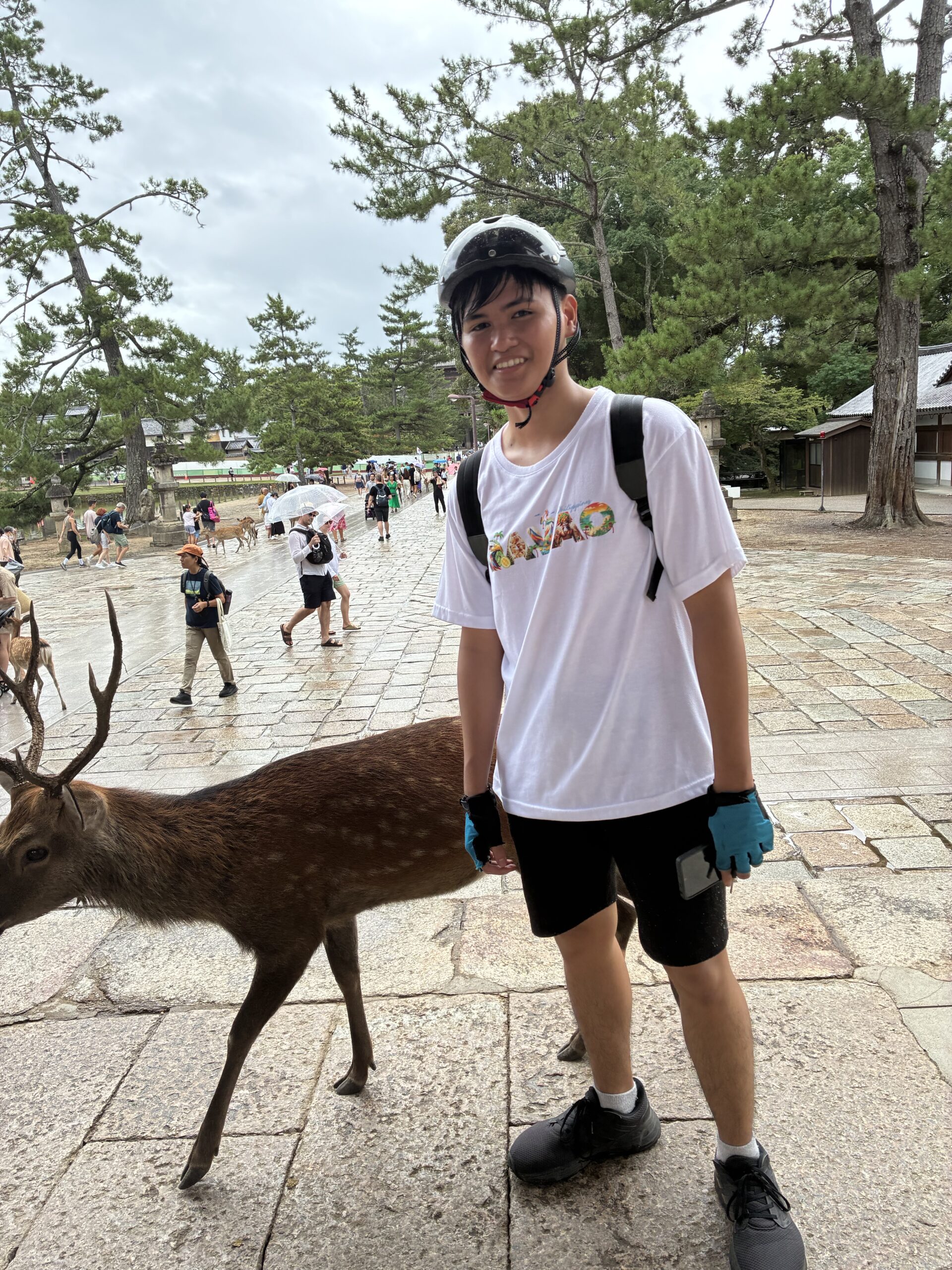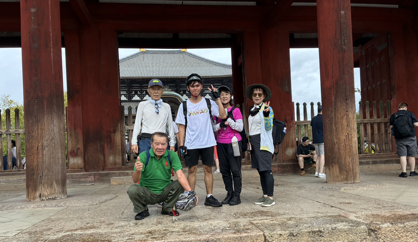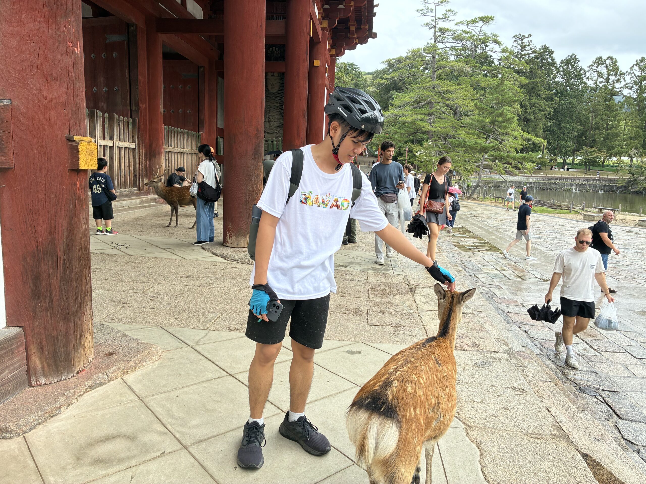 まず東大寺に向かって走りましたが、少し雨が降ってきたので一時雨宿り。美女が2人で、ビショビショなどの冗談をニーニョ君に教えたのは、誰?