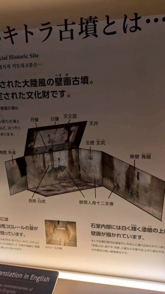 南壁 四神 「朱雀」 、北壁 四神 「玄武」 、東壁 四神 「青龍」 、西壁 四神 「白虎」 、天井 「天文図」が描かれています。