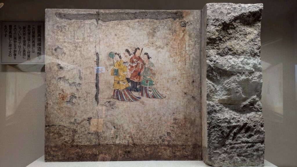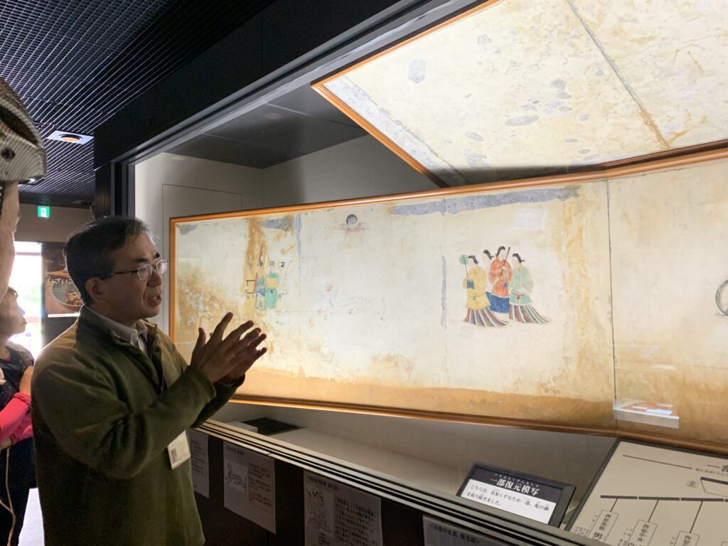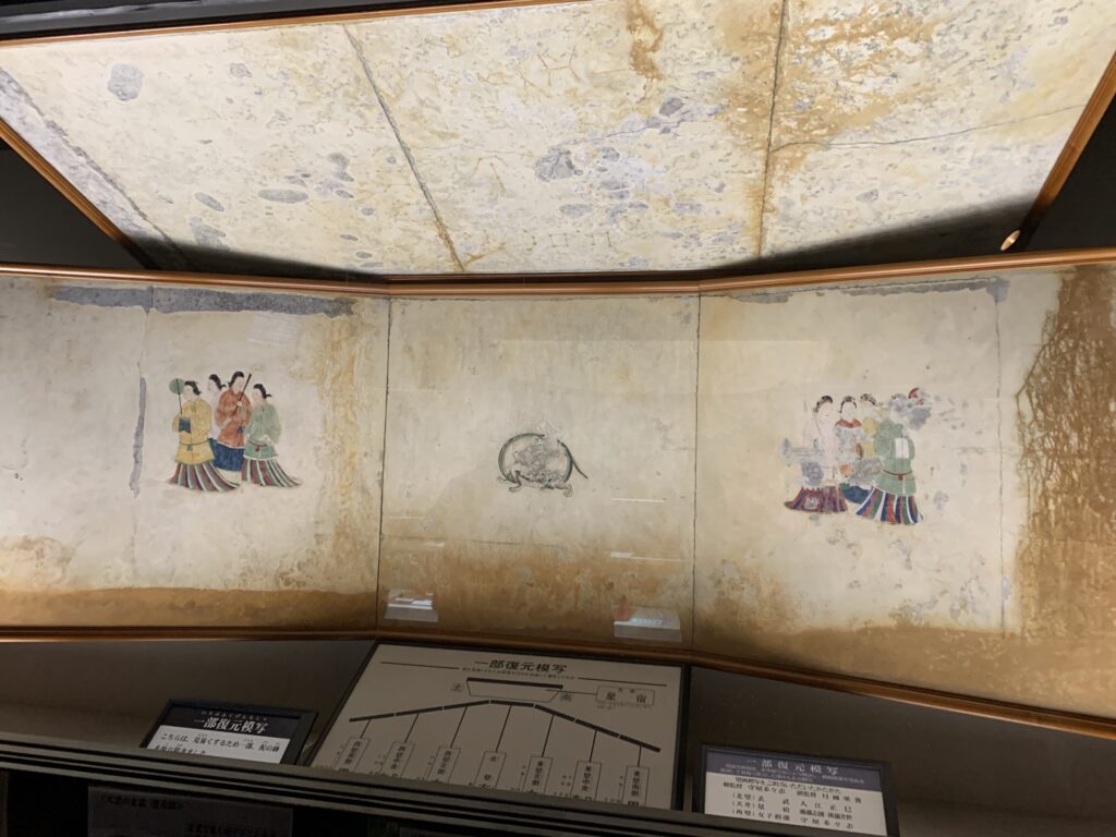 次の高松塚古墳も明日香村にあって7世紀末~8世紀初めの古墳で極彩色の壁画「飛鳥美人」で有名です。学芸員の方の説明がとてもわかりやすかった。
