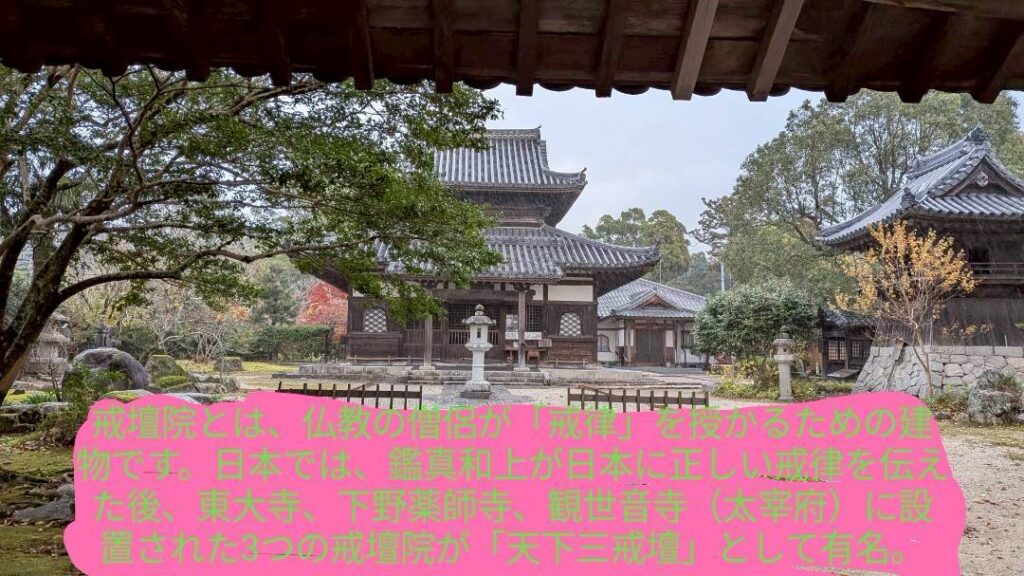 日本の三戒壇(観世音寺・東大寺・下野薬師寺)の一つに数えられ、正式な僧侶となるための戒律を授ける場所でした。