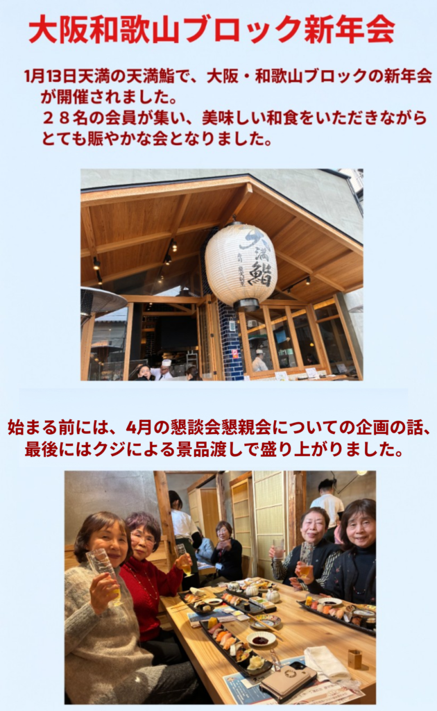 大阪、和歌山ブロックの新年会に、寒い中、沢山の御出席頂き有難うございました。