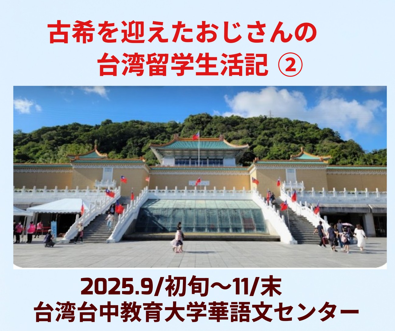 古希を迎えたおじさんの台湾留学生活記② 柴田幹夫 記 随筆/雑記 2026.01.24 柴田幹夫 3/26(木曜日)午前10時から、浪速区民ホールでLSC[台湾文化同好会}が開催されます。 小生が上記の内容についてお話させていただきますので、奮ってご参加ください。 編集担当:下出澄夫 いいね!