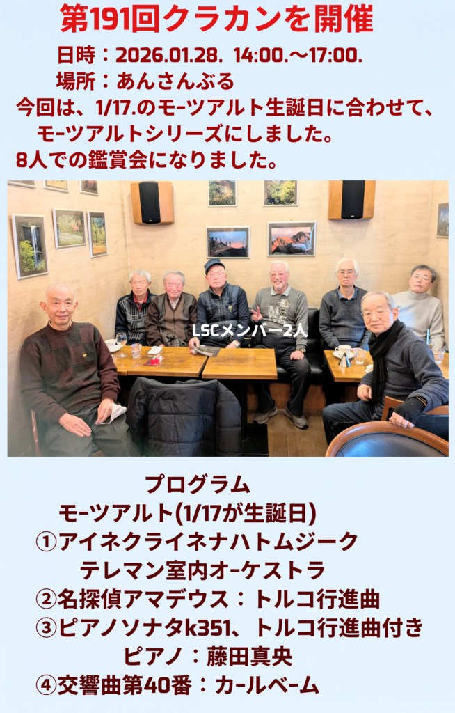 クラカン第17回生演奏鑑賞を開催しました。 下出澄夫 記