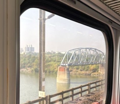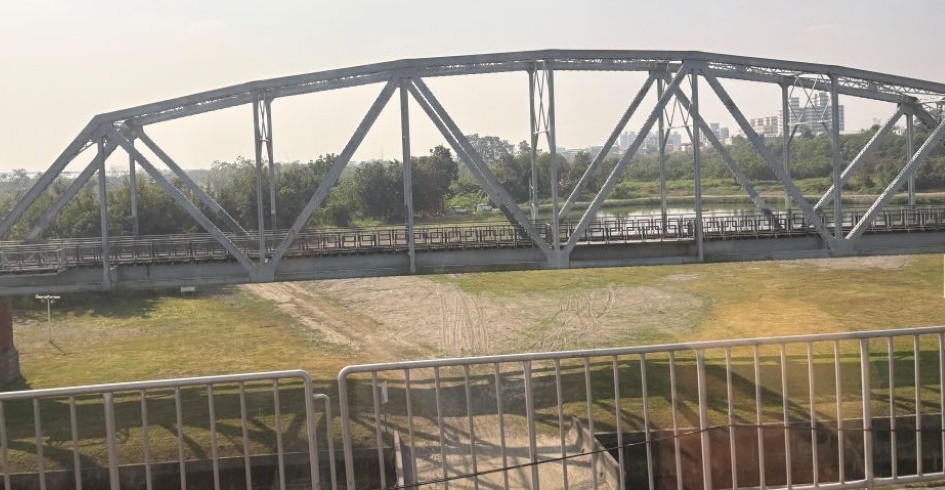 車窓から見えるのは台湾で2番目に長い川、高屏渓(こうへいけい)。ここにかかる橋は、「東洋一の長さを誇る鉄橋」(1.5 km) だったそうです。工事に関わった飯田豊二技師は、1913年の完成を待たずに亡くなっています。実はこの橋…