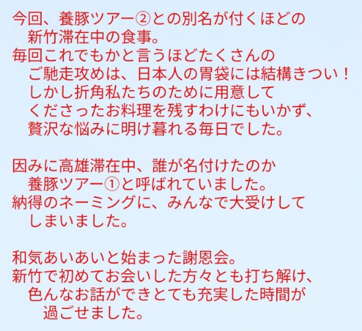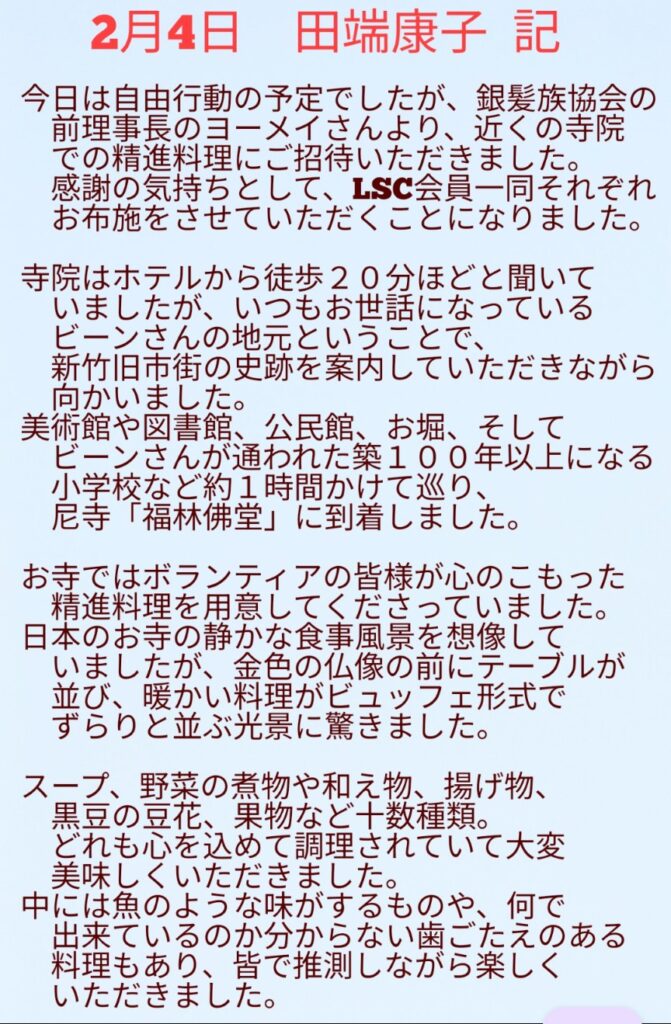 台湾新竹ステイのレポート 海外旅行体験記/記録 2026.02.26 2026.2.1~2.9の台湾新竹ツアーのレポートです。担当は、2.2:佐藤三郎、2.4:田畑康子、2.6:長谷見文子、2.9:段野京子 編集担当:下出澄夫 いいね!