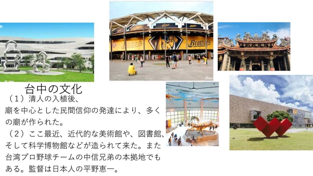 また台中の文化も色々な変遷を経てきました。中国との関係が良くないことから、現在は東南アジア等南の方の国々と関係強化し、新しい文化を形成しつつあるというお話を伺いました。